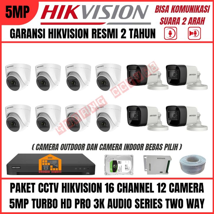 Paket CCTV Hikvision 16 Channel 12 Camera 5mp Turbo HD 1080p Audio Kamera CCTV Komunikasi 2 Arah