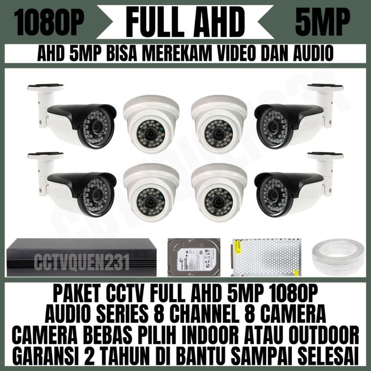 PAKET CCTV FULL AHD 5MP 8 CHANNEL 8 KAMERA AUDIO 1080P IR SONY