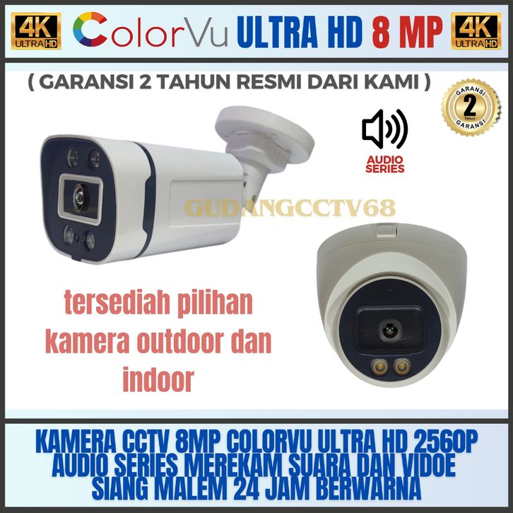 PAKET CCTV 8 CHANNEL 7 CAMERA 8MP COLORVU ULTRA HD 4K 2560P AUDIO SERIES TINGGAL PASANG