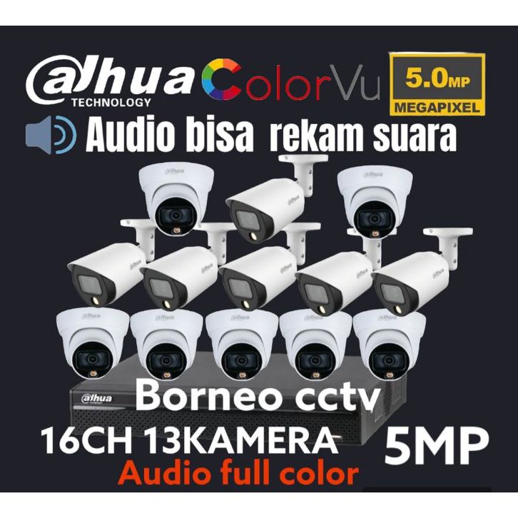 PAKET CCTV DAHUA 5MP 16 CHANNEL 13 KAMERA COLORVU AUDIO FULL COLOR SIANG MALAM