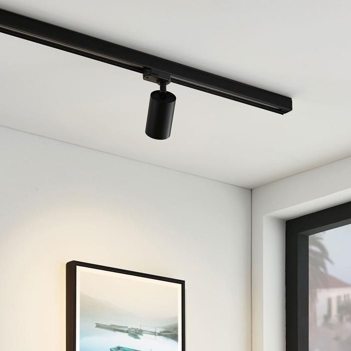 Paket Lampu Sorot 10w 1 set isi 2 + Rel 1M Track Light Rel Spotlight - Hitam, 3000k (Kuning)