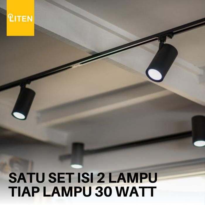 Paket Lampu Sorot 30W 1 set isi 2 + Rel 1M Track Light Rel Spotlight - Hitam, 3000k (Kuning)