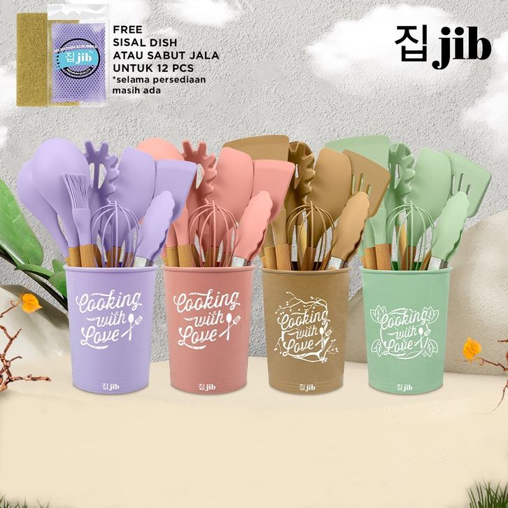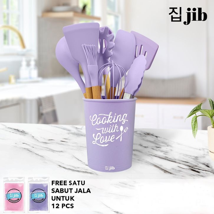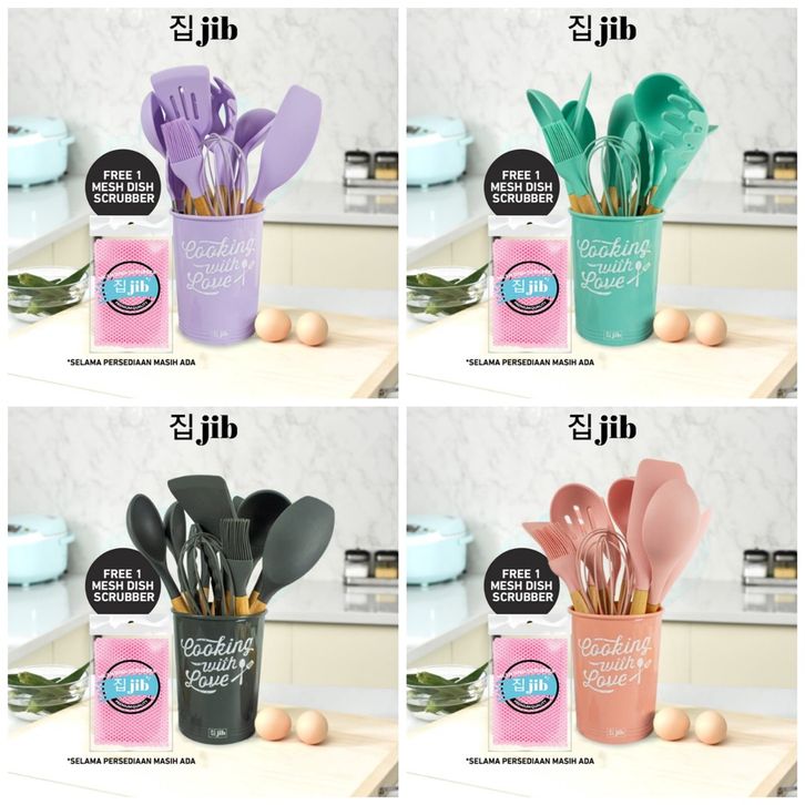 PROMO Kitchen Set Minimalis Atas Bawah Alumunium JIB Silicone Utensil Set 11 + Bucket / Kitchen Silicon Utensile Set 12