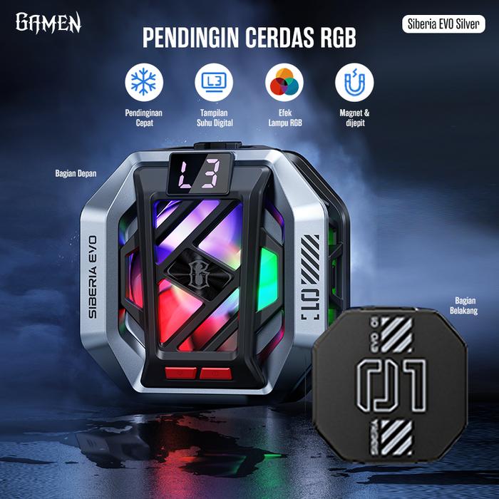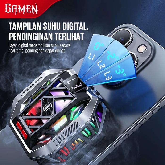 GAMEN Siberia Evo Fan Cooler Hp Gaming Magnetic RGB Light Up to -4°C LED Display Dengan Klip Penjepit Kipas Angin Ponse