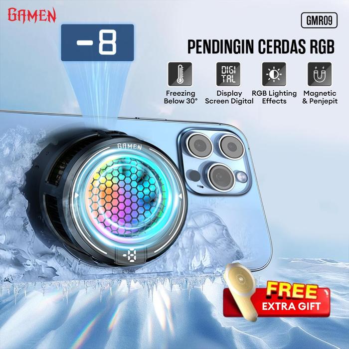 GAMEN GMR09 Fan Cooler Hp Gaming Magnetic RGB Dengan Klip Penjepit Dan Heatsink Magnetic Original - Garansi 1 Tahun - GM