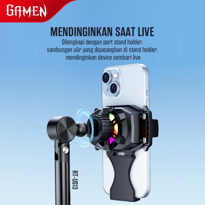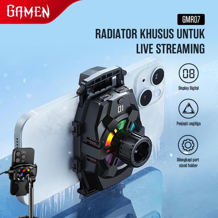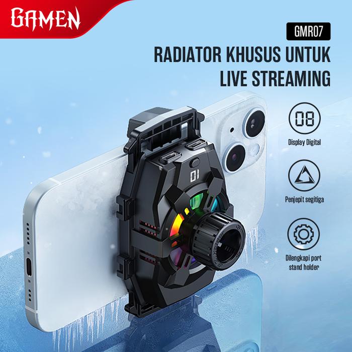 GAMEN Radiator Fan Cooler GMR07 RGB Digital Display Tempratur Dengan Clip On Mobile Phone Kipas - Garansi 1 Tahun - GMR