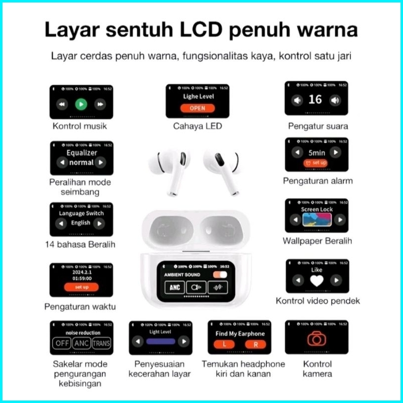 A9 Pro Anc Enc Tws Earphone Headset Bluetooth V5.4 Smart Screen Active Noise Reduction