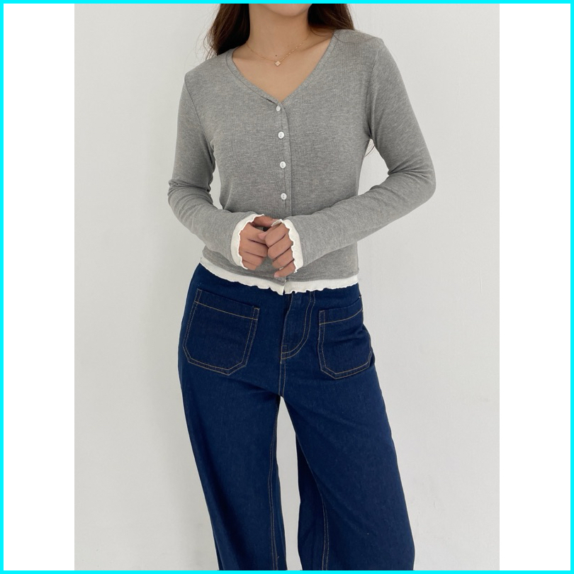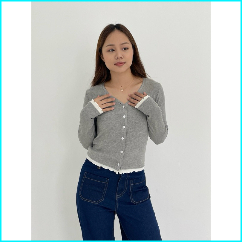 Asoka Kyra Cardigan 3154 - Outer Basic Long Sleeve Knit V-neck - Atasan Wanita Cardi Lace