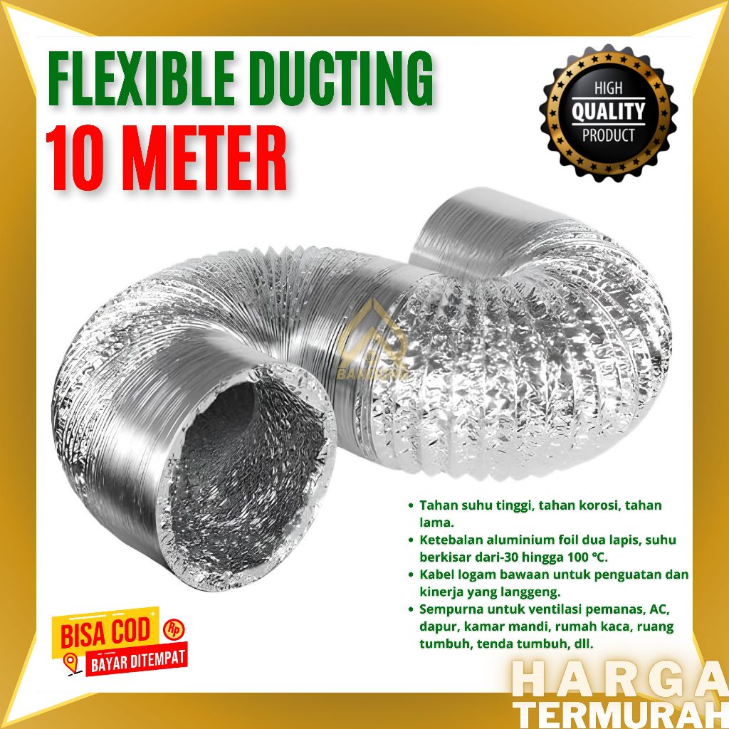 TERMURAH FLEXIBLE DUCTING PER DUS (10METER) 4" - 6" - 8" - 10" inch PIPA CEROBONG ALUMUNIUM