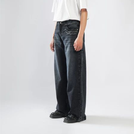 celana jeans celana denim celana pria celana legging, celana Amigos de Nimes - London Dark Charcoal - Wide Denim Pants