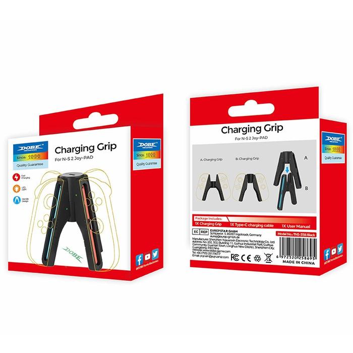 DOBE CHARGING GRIP 2 MODEL DESIGN WITH 1 CHARGER FOR NINTENDO SWITCH 2 JOYCON JOY CON / NSW2 / NS2 TNS-3156