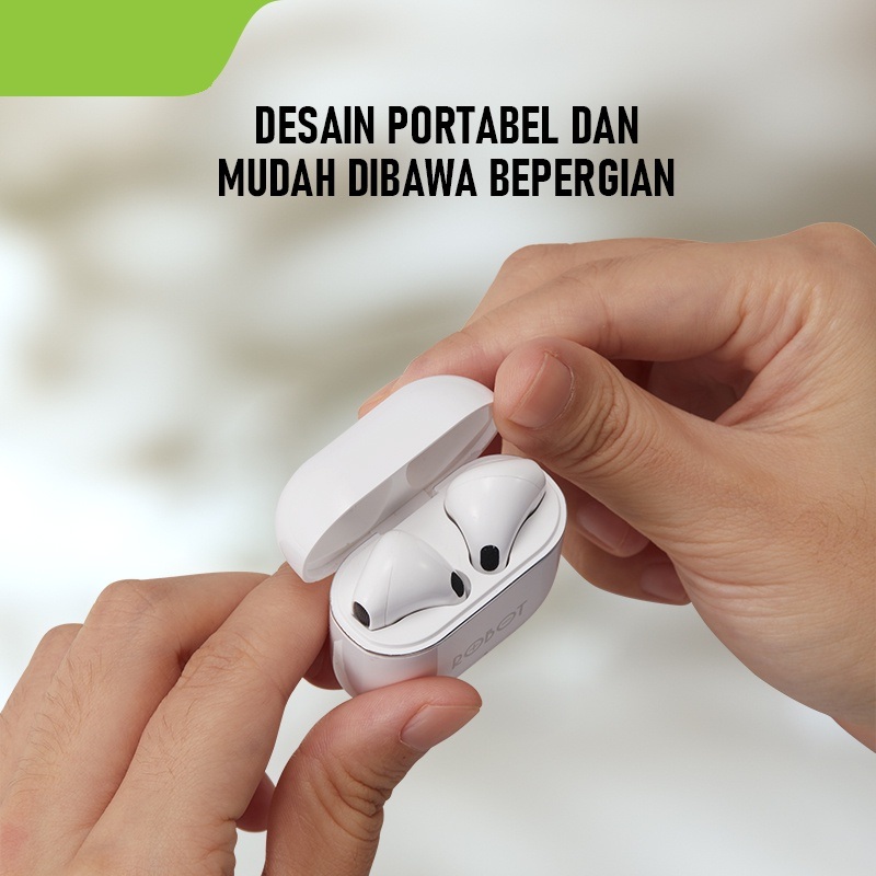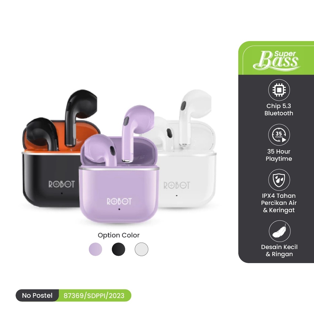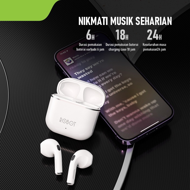 ROBOT TWS Earphone Bluetooth Waterproof Airbuds Suara Bass T50S Chip Bluetooth 5.3 Tahan Percikan Air Fitur Smart