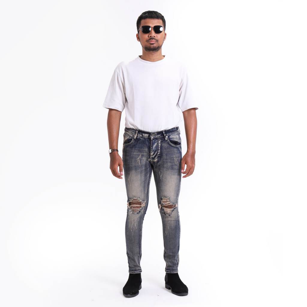 [Star] Celana Jeans Pria Sobek Slimfit Ripped Jeans Stretch
