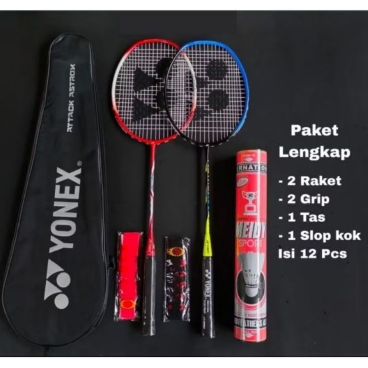 RAKET BADMINTON PAKET LENGKAP M0DEL SENYAWA TERLARIS 2 RAKET 29rIP 1 TAS 12 KOK FREE PACKING KAYU
