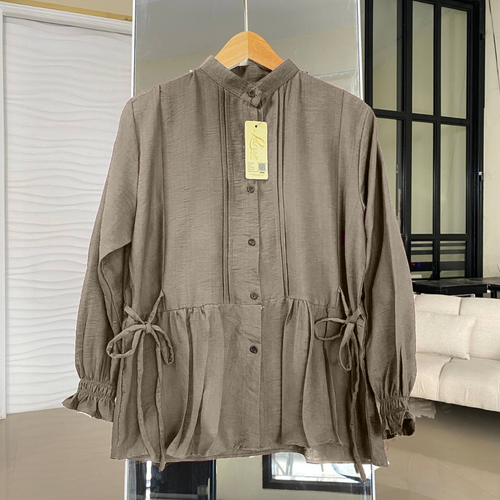CLARISA BLOUSE KOREAN STYLE BAJU ATASAN WANITA KEKINIAN - ATASAN KEMEJA SANTAI BLOUSE CEWEK DEWASA POLO LINEN PANJANG PR