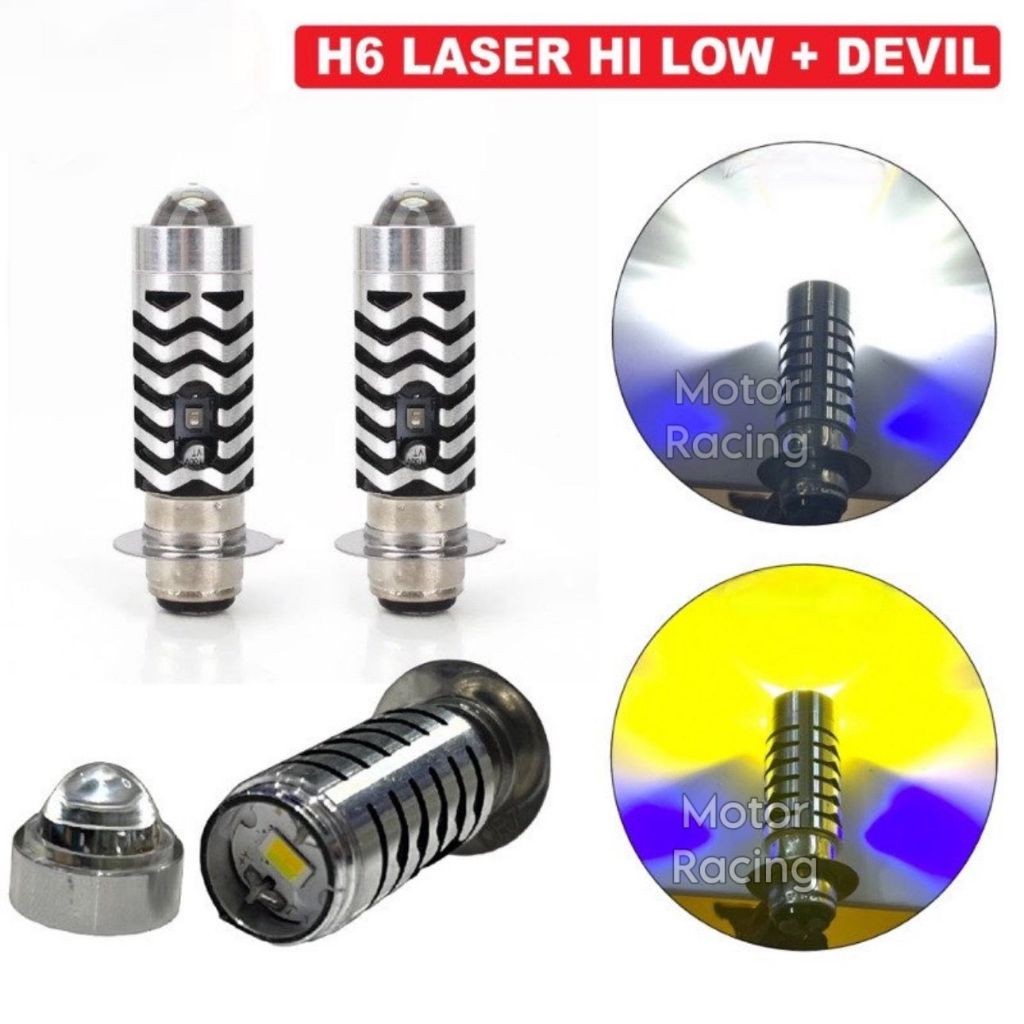 [Star] 1PCS Lampu utama Led H6 laser jauh dekat putihkuning plus senja biru