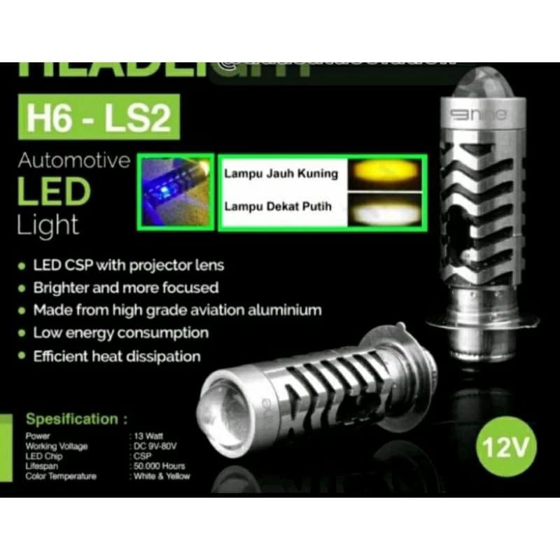 [Star] LAMPU LUMINOS LED MOTOR H6 LS2 15 WATT LASER AC DC 2 WARNA WHITE YELLOW DAN SENJA BIRU SUPER TERANG ORIGINAL