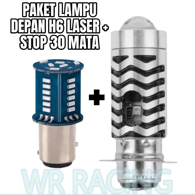[Star] ( PAKET HEMAT ) LAMPU LED DEPAN H6 LASER SENJA + LAMPU STOP BELAKANG 30 MATA RUNNING SEMUA MOTOR