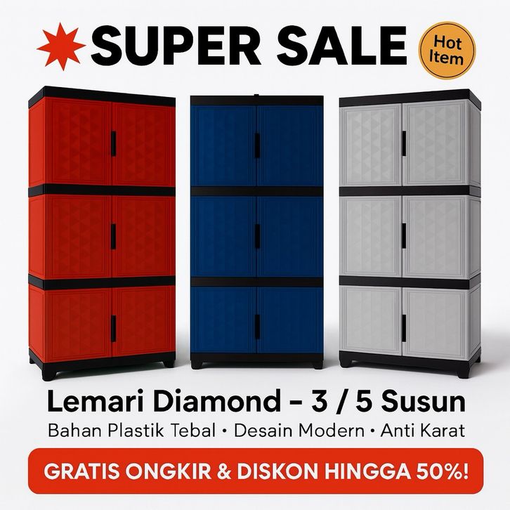 Lemari Plastik 4 Susun Jumbo | Lemari Pakaian Serbaguna | Lemari Diamond Motif Modern | Rak Baju Plastik