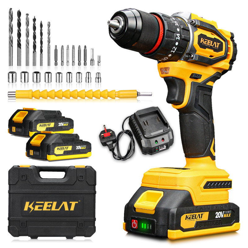 KEELAT KCD011 NEW Brushless Mesin bor 2baterai 10mm Cordless Drill Cordless Impact Drill Screwdriver Multifunction bor l