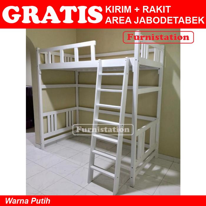 RANJANG TINGKAT TANPA MEJA BELAJAR KERJA / TEMPAT TIDUR SUSUN 1 ORANG - PUTIH