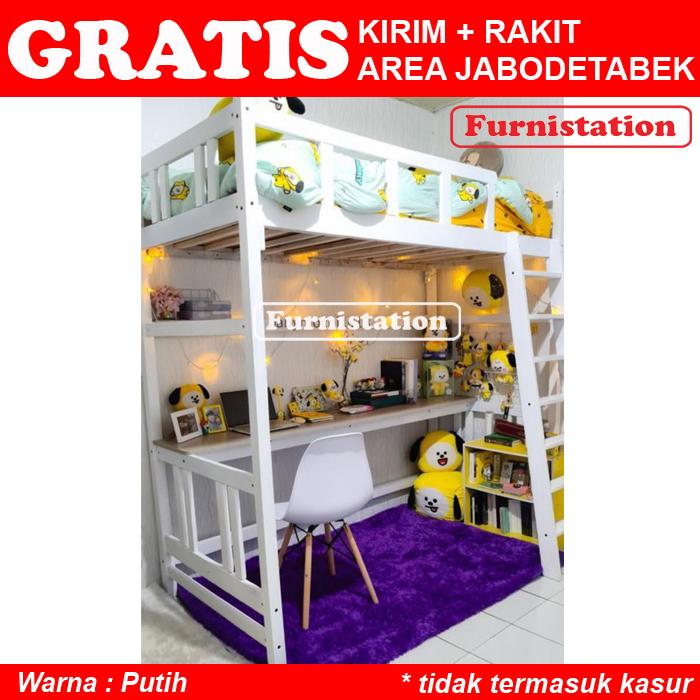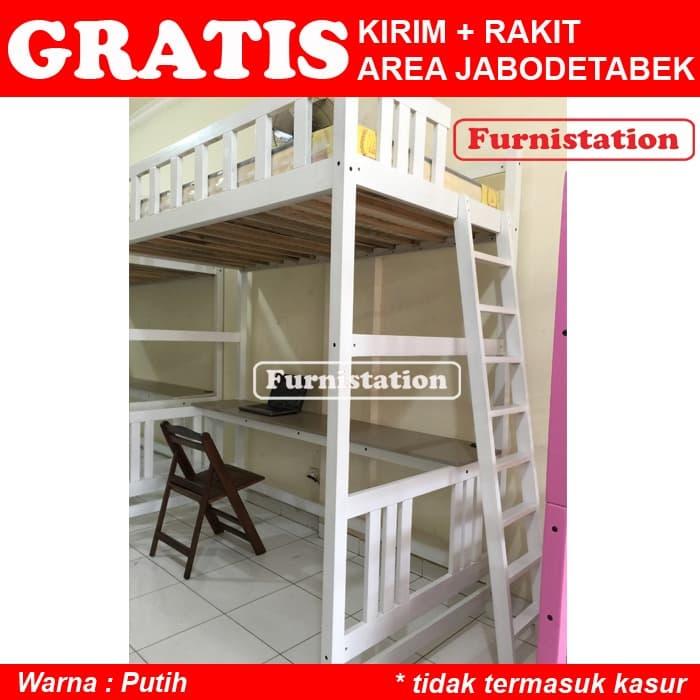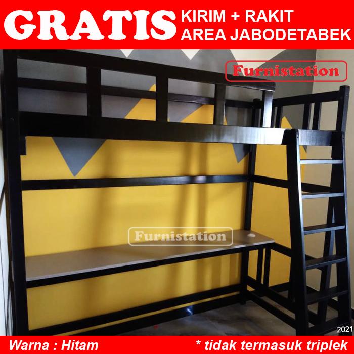 RANJANG TINGKAT DENGAN MEJA BELAJAR KERJA / TEMPAT TIDUR SUSUN 1 ORANG - HITAM, 90X200 + MEJA