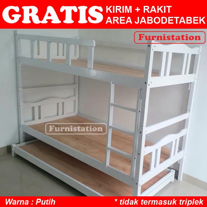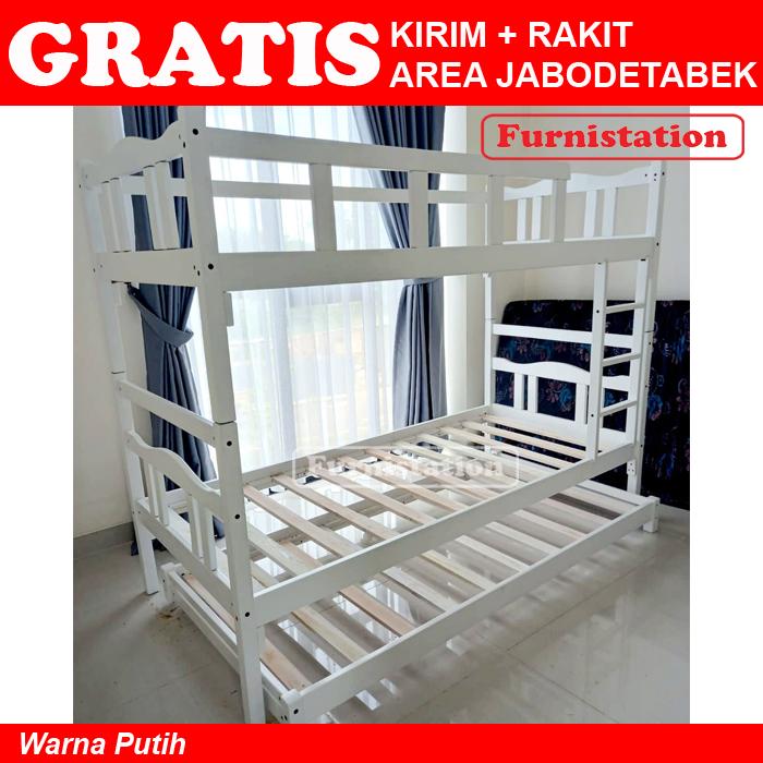 RANJANG TINGKAT KAYU WARNA PUTIH 100X200 / TEMPAT TIDUR SUSUN BUNK BED
