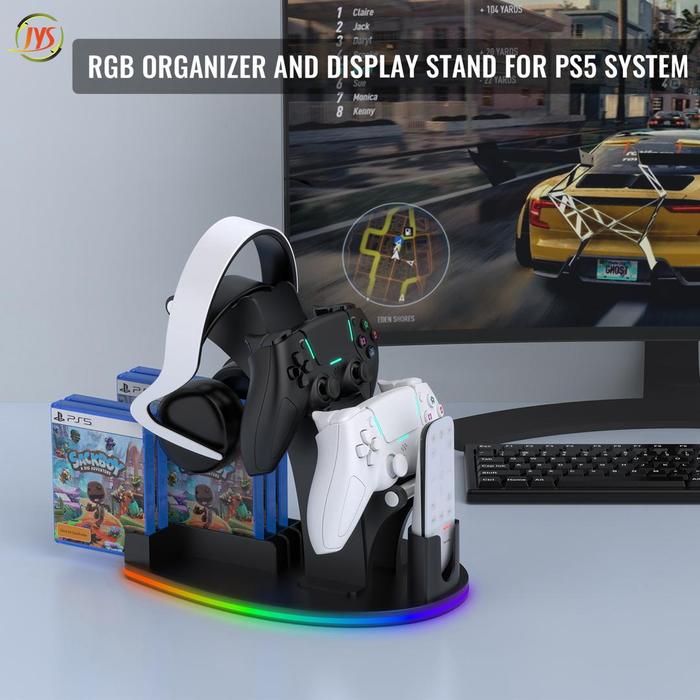 JYS RGB LIGHTING ORGANIZERAND DISPLAY STAND FOR PS5 SYSTEM / RAK KASET HEADSET REMOTE CONTROLLER PS5 JYS-P5128 - PUTIH