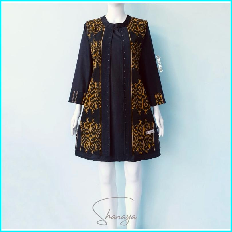 Shanaya Tunik Batik Tenun Kombinasi Toyobo Tenun Original Batik Kerja Baju Batik Wanita Resmi Batik Kondangan Cantik Ele
