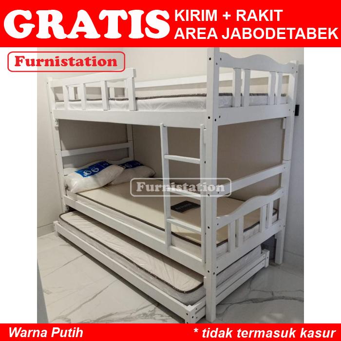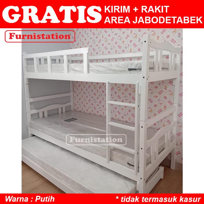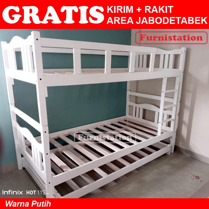 RANJANG TINGKAT KAYU WARNA PUTIH / TEMPAT TIDUR SUSUN/ BUNK BED 90X200