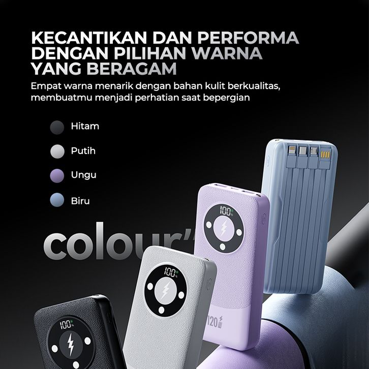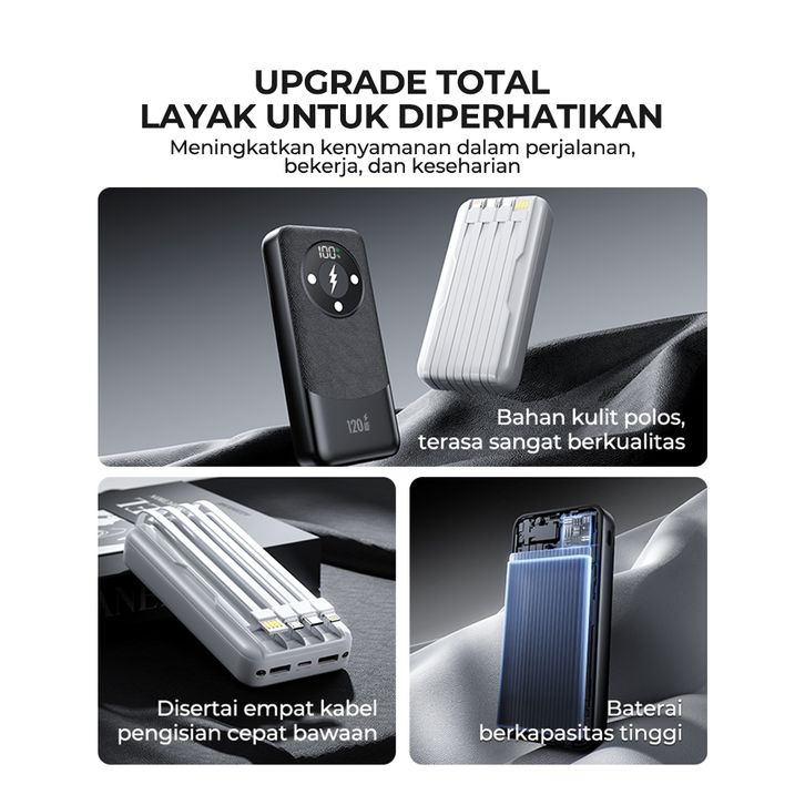 Power Bank 20000mAh Portabel Dengan 4 Built-in Cables Kabel Pengisi Cepat 120W For Iphone Android LED Display DX37