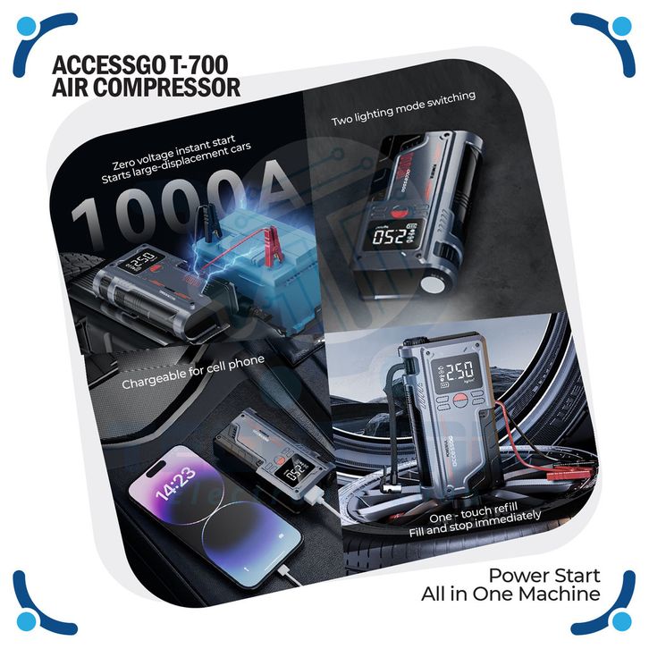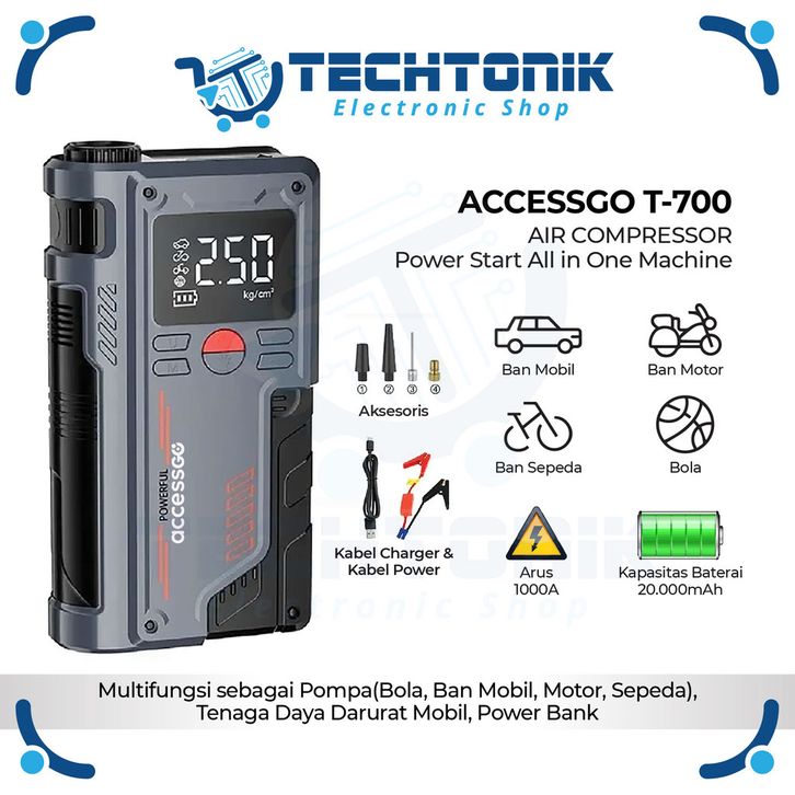 pompa angin mobil elektrik POMPA UDARA ELEKTRIK Digital T-700 Multifungsi AIR COMPRESSOR JUMPER POWER BANK 20000mAH Ty