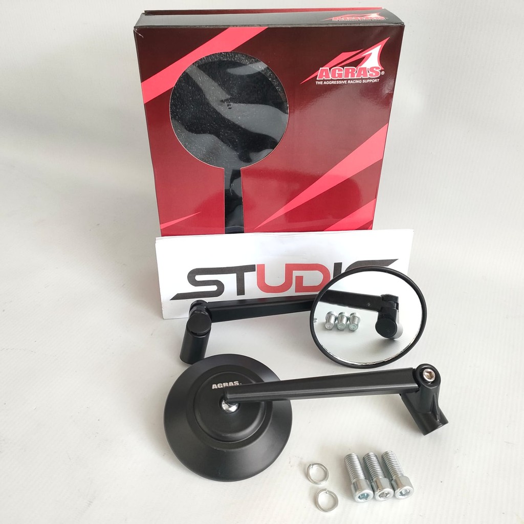 SPION TOMOK BULAT RETRO CNC JOKOWI TANGKAI FLEXIBLE KACA PUTIH - UNIVERSAL SEPEDA MOTOR