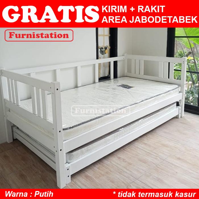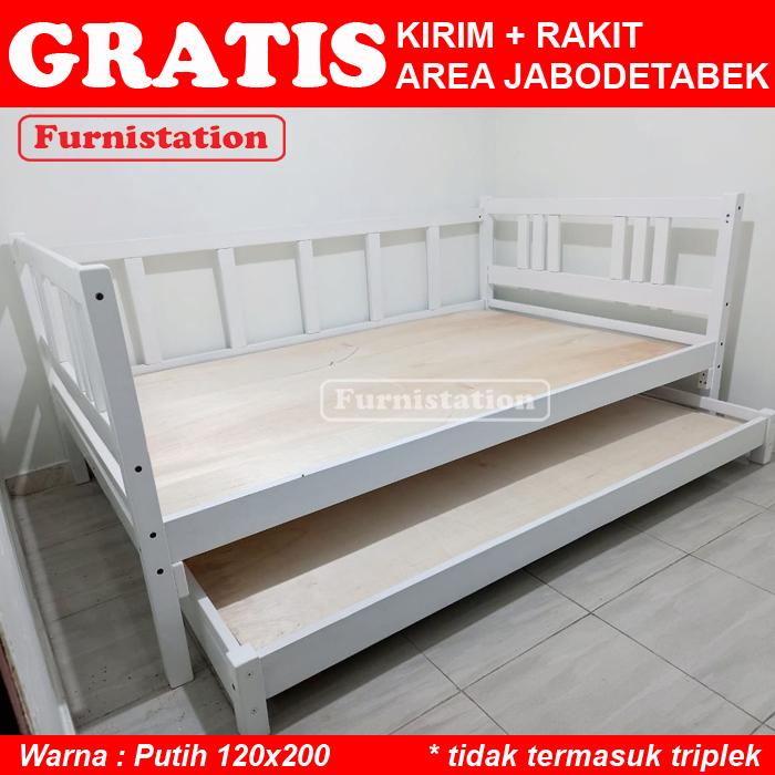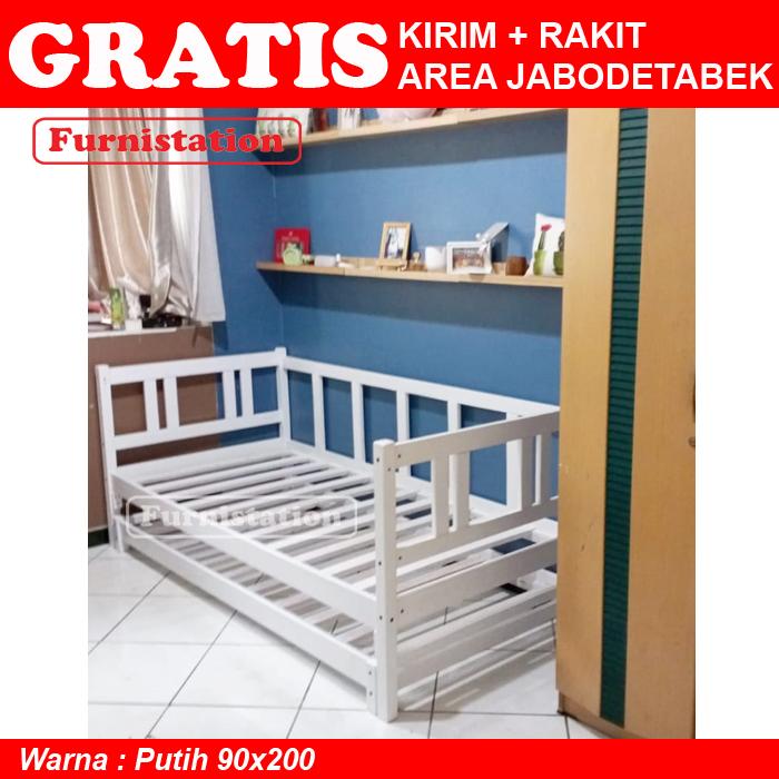 SOFABED DENGAN SINGLE BED RANJANG SORONG RANJANG KAYU MINIMALIS - 100X200