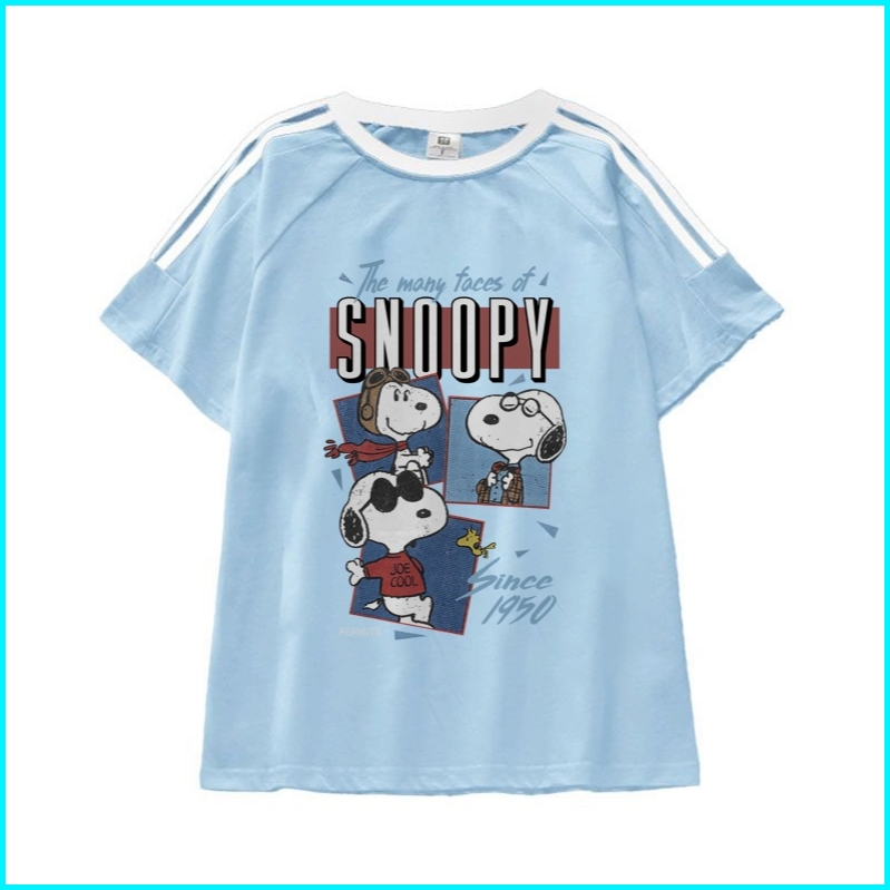 Forteid Cetakan Merek Trendi Retro Baju Oversize Pola Snoopy Korean Style Kaos Longgar