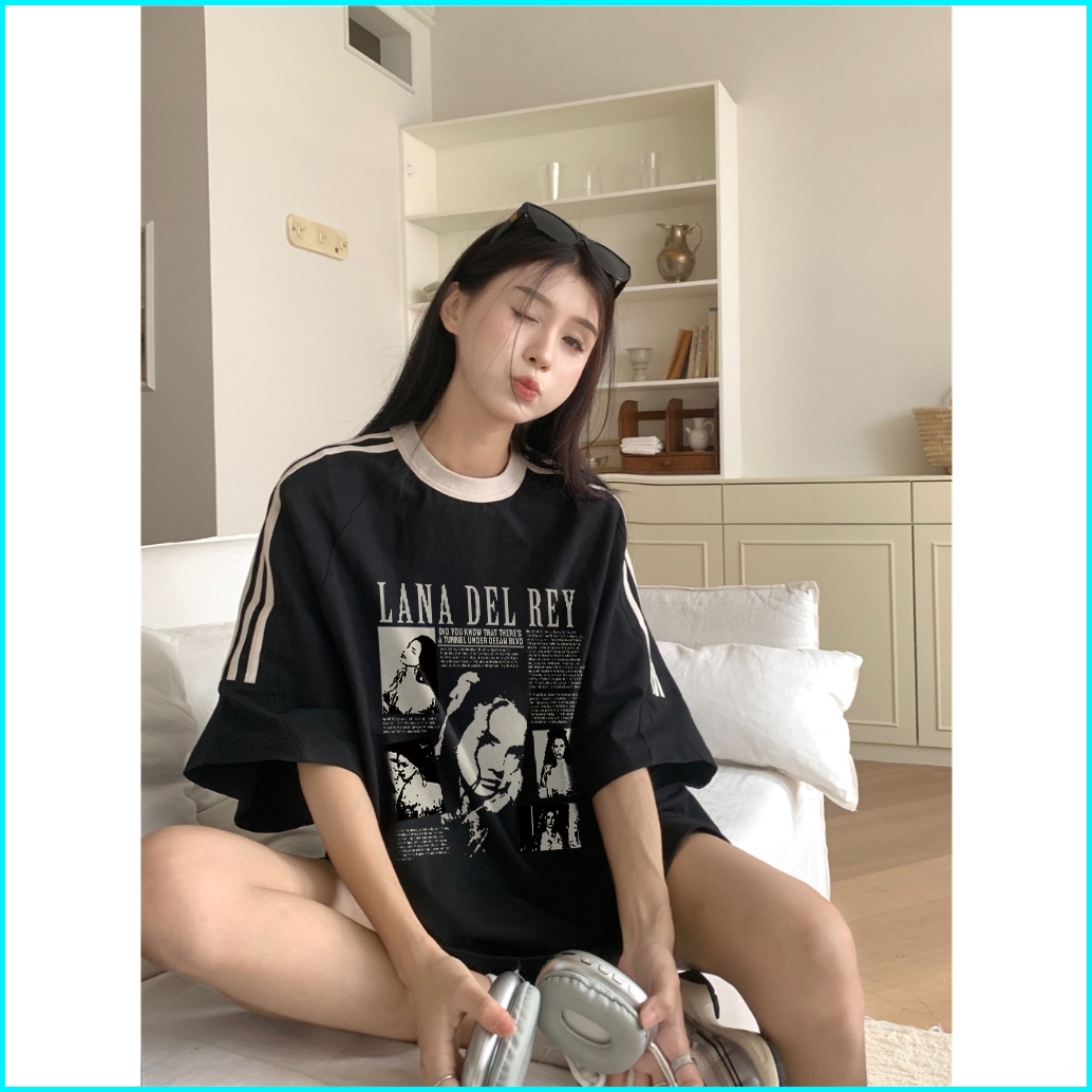 Forteid Cetakan Merek Trendi Retro Baju Oversize Pola Penyanyi Tahun 90-an Lana Del Rey Retro Korean Style Kaos Longgar