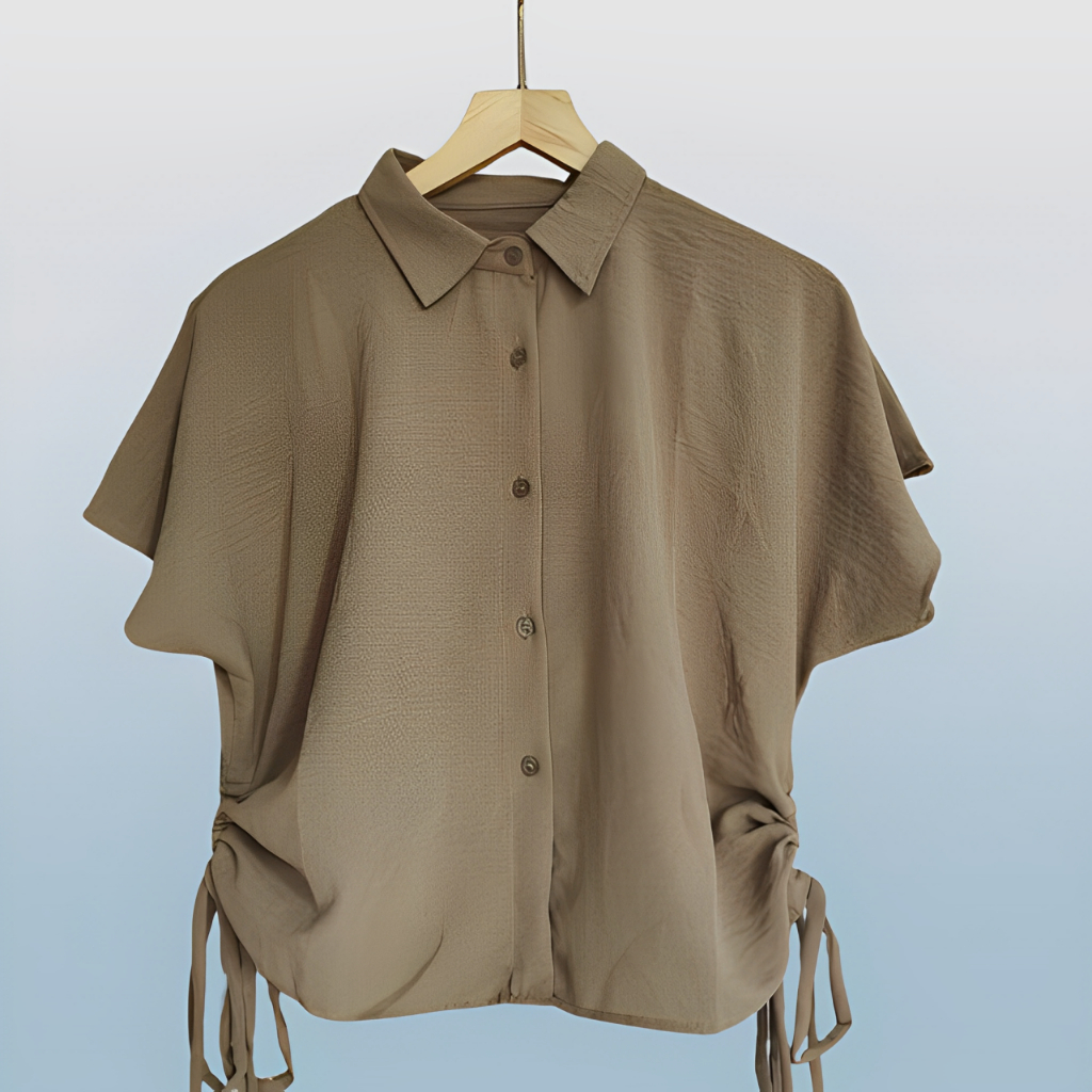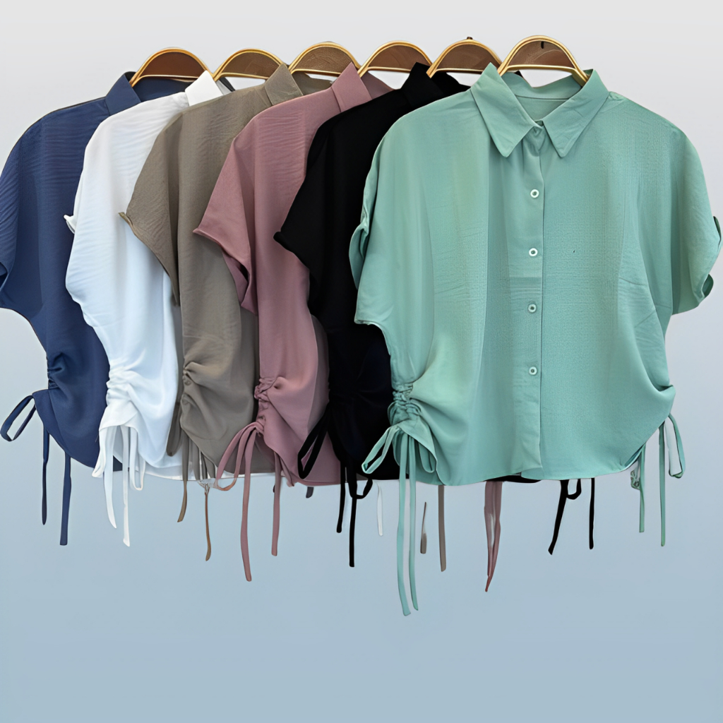 Terlaris Kemeja Wanita Crop Lengan Pendek Crinkle Tali Samping