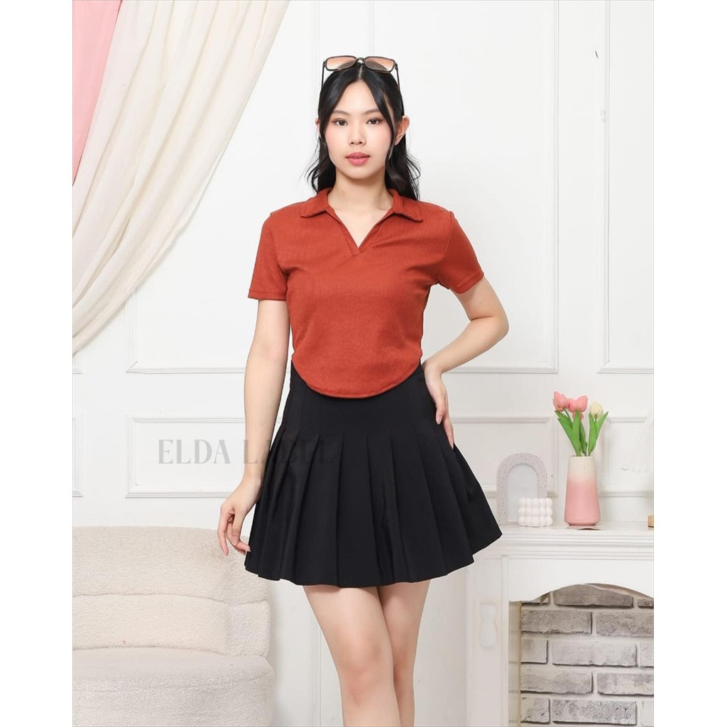 Elda label crop top v neck oval kekinian lengan pendek wanita kaos cewek Cantik Panjang