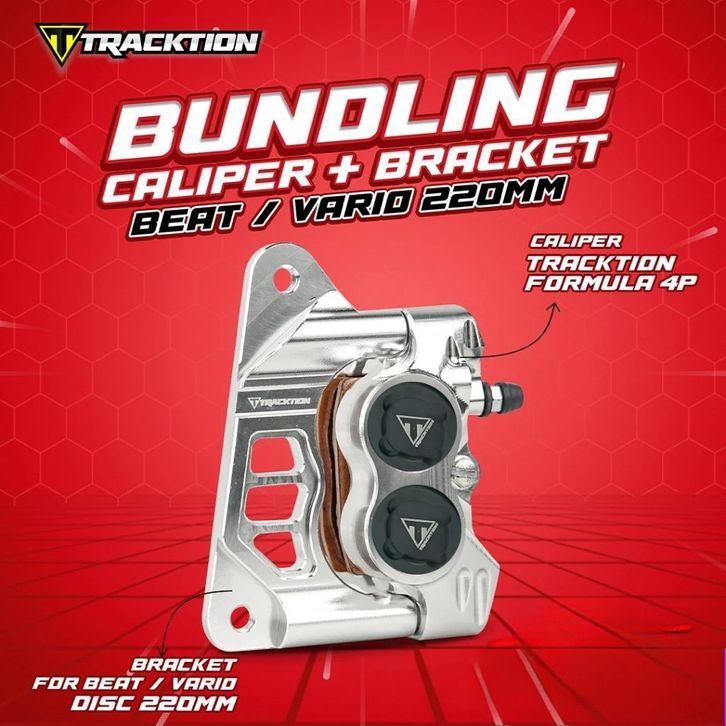 CALIPER TRACKTION FORMULA 4P FOR VARIO/BEAT SILVER EDITION CNC 220MM DAN 260MM Tracktion / TAD Racing