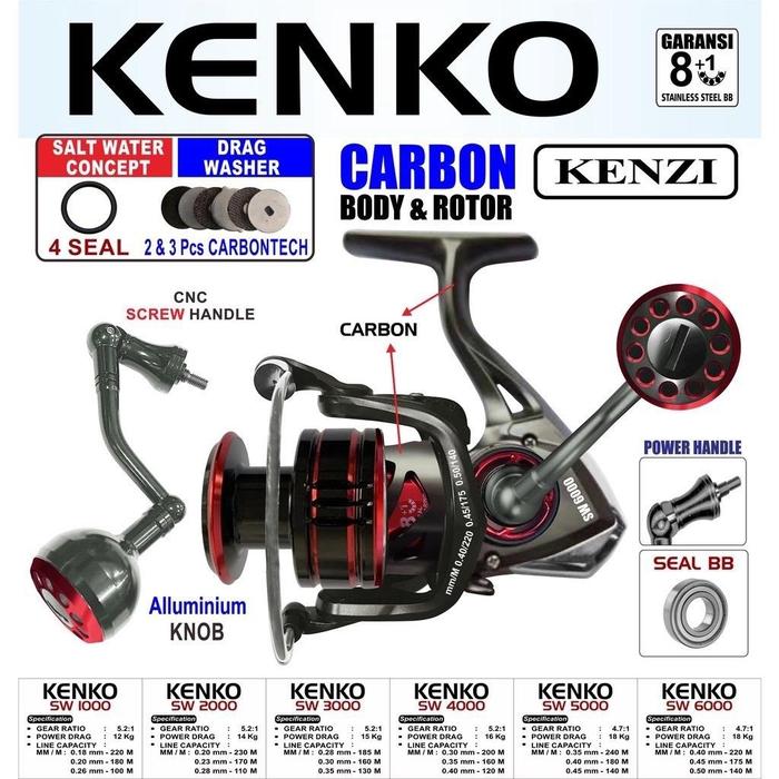 Kenzi Kenko SW Carbon Reel Pancing Kapasitas 1000 2000 3000 4000 5000 6000 - 1000