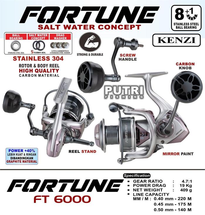 Kenzi Fortune SW 4000 5000 6000 Reel Memancing Pancing Ikan Body Carbon Power Handle Free Reel Stand - 4000