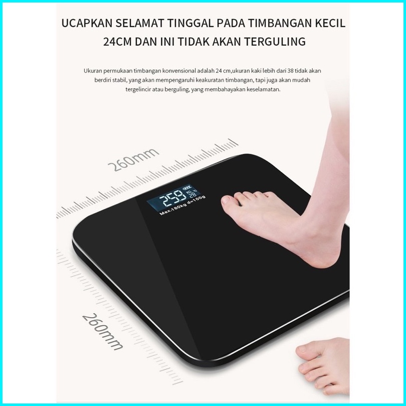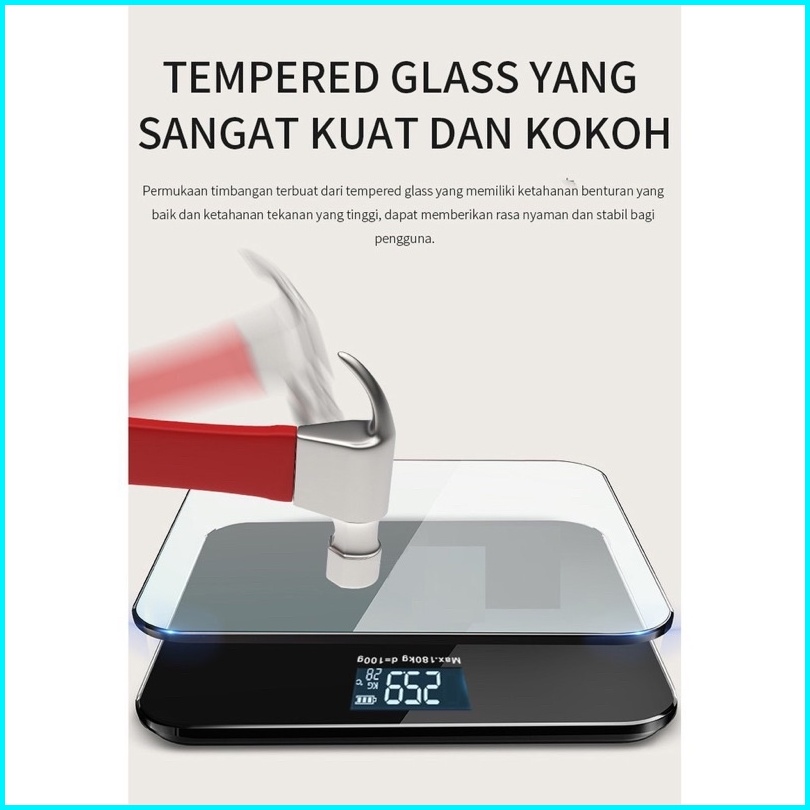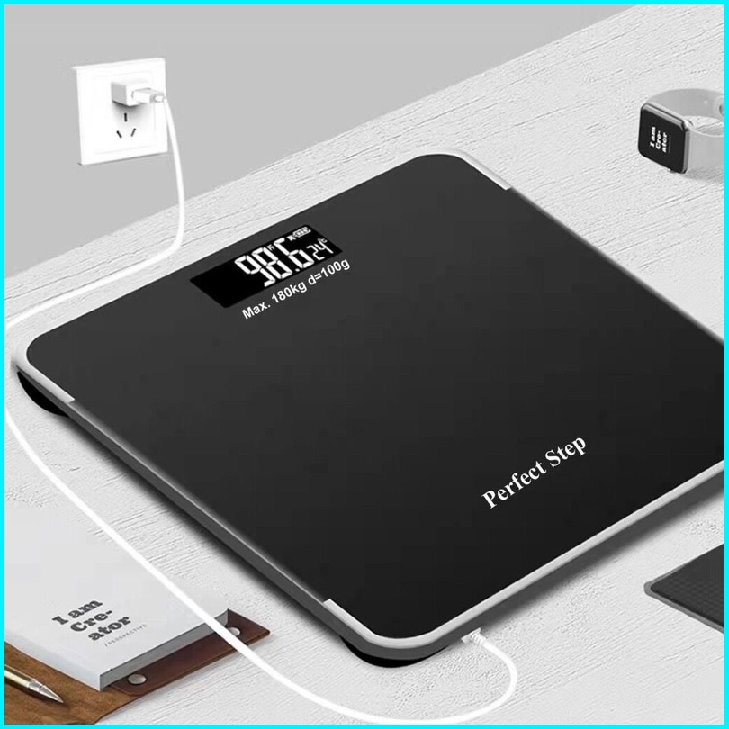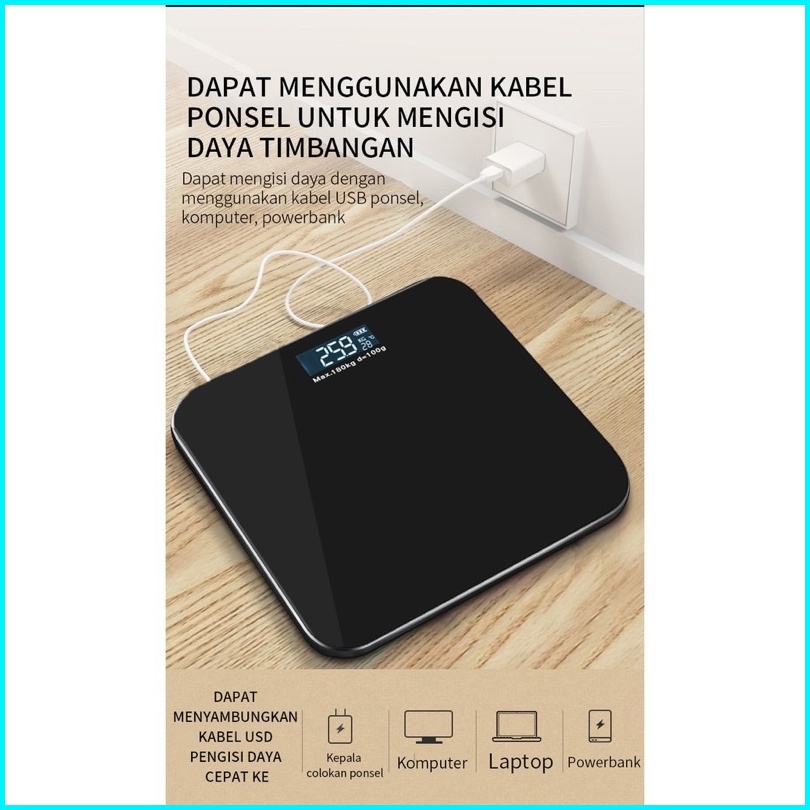 Timbangan Badan Digital Dengan Charger Usb Baterai 180kg. Elektrik Lcd Anti Pecah Dewasa Body Besar