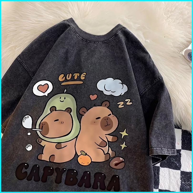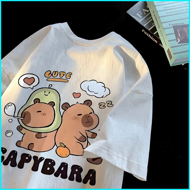 Forteid T-shirt Lengan Pendek Baju Kaos Oversize Wanita Baju Kaus Wanita Korea Baju Atasan Wanita Terbaru Cetakan Capyba