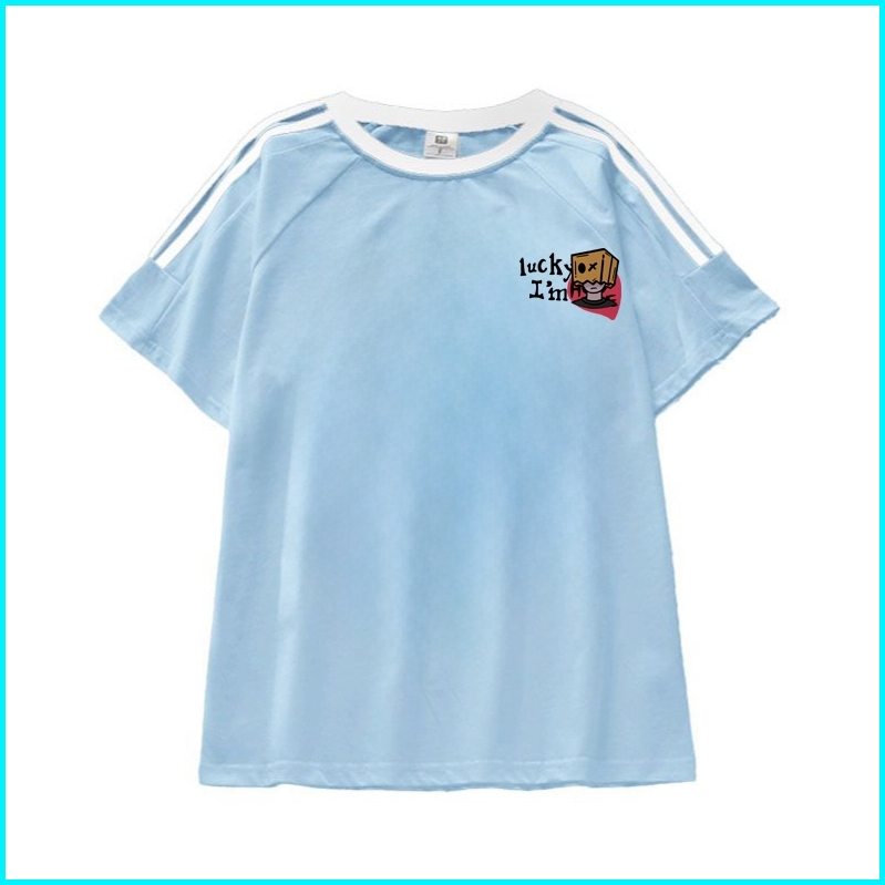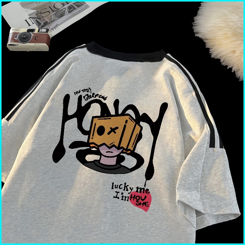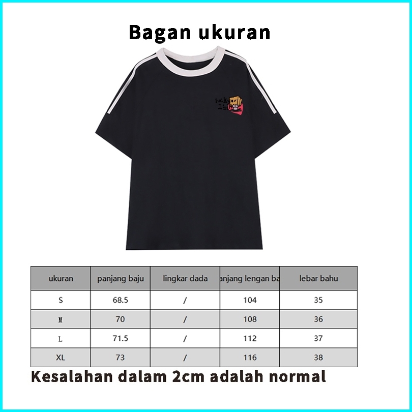 Forteid Pola Merek Trendi Retro Baju Oversize Bergaris Bahu Korean Style Kaos Longgar