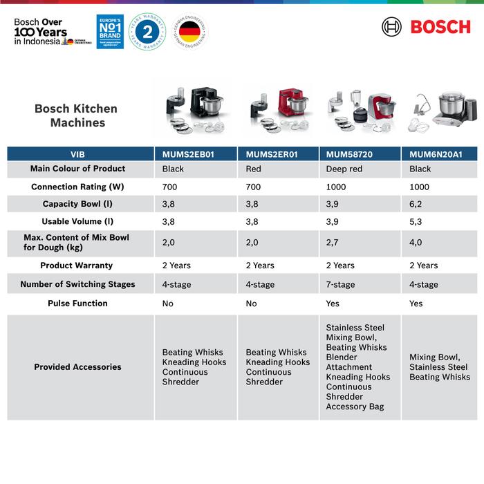 BOSCH MUMS2ER01 KITCHEN MACHINE / STAND MIXER MERAH | 3.8 LITER
