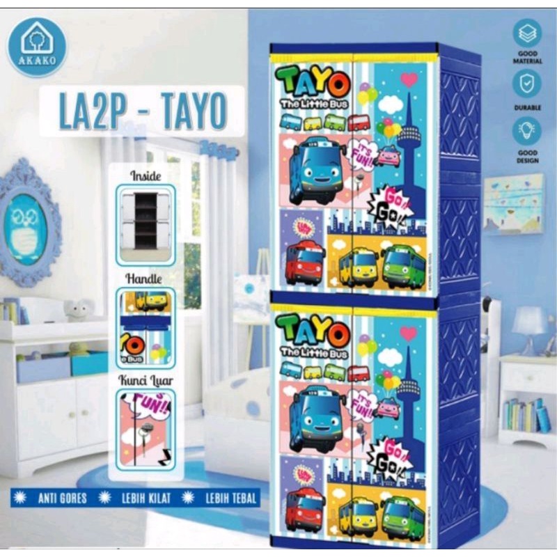 [Mall] AKAKO - LEMARI PAKAIAN PLASTIK ANAK BABY JUMBO 2 PINTU SUSUN 4 MOTIF PRINTING LA2P