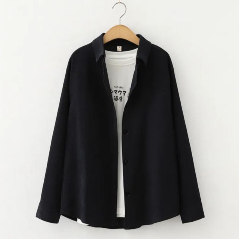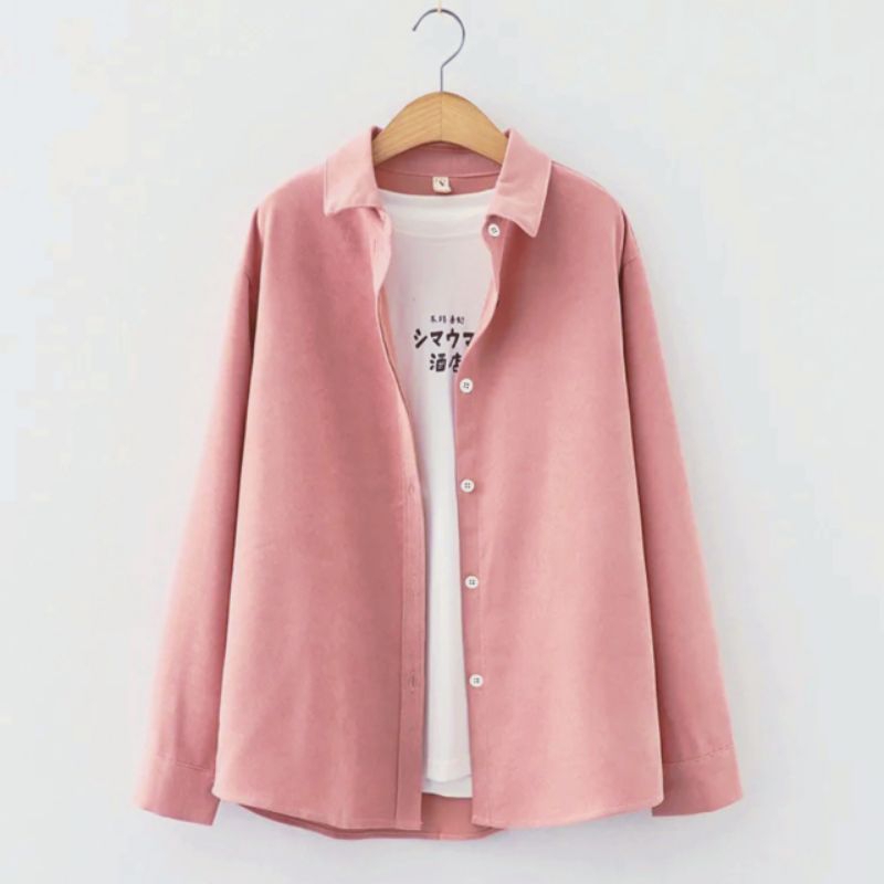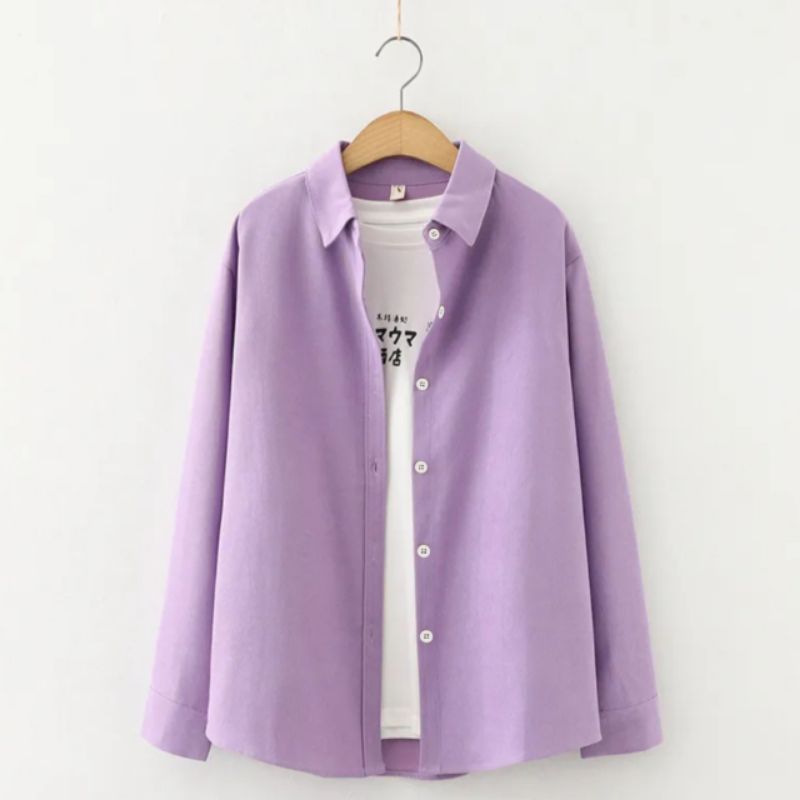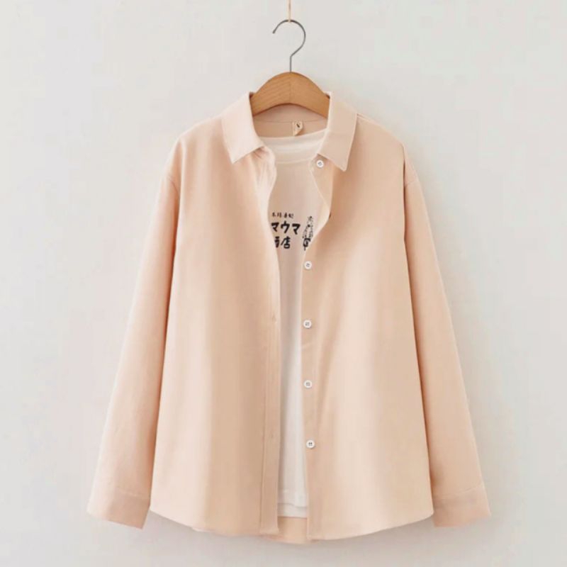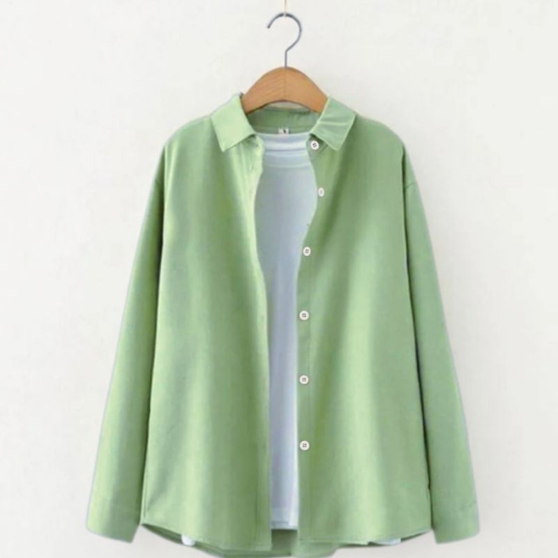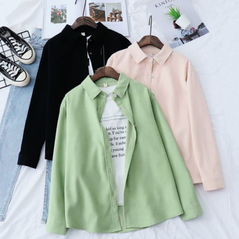 Kemeja Wanita Polos Kemeja Basic Lengan Panjang Wanita Katun Simple Hitam Putih Navy Pink Marun Sage Atasan Kasual Forma