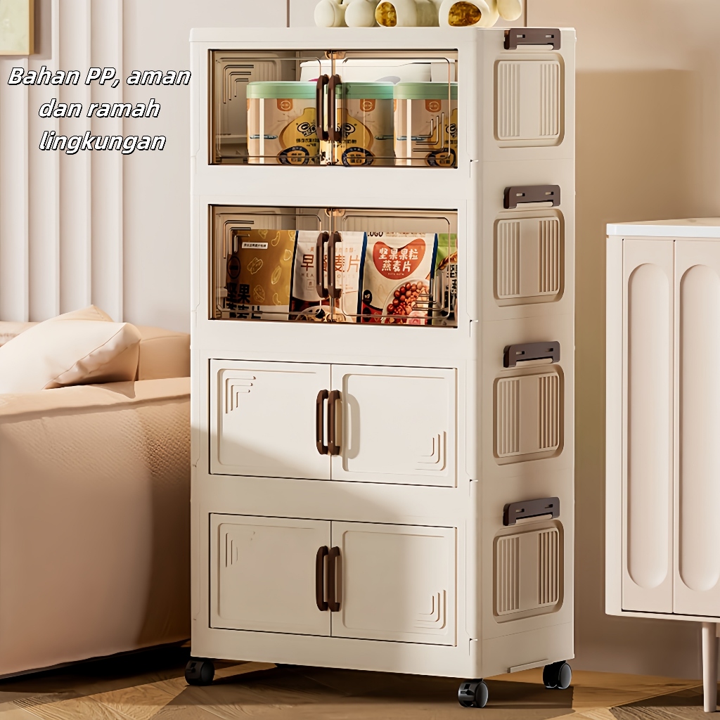 [Mall] 3/4/5 LAPISAN LEMARI LIPAT DENGAN RODA UNIVERSAL/RAMAH LINGKUNGAN/BEBAS PERAKITAN/LEMARI PENYIMPANAN PLASTIK LIPAT DENGAN PINTU MAGNET/LEMARI PAKAIAN BERKUALITAS TINGGI