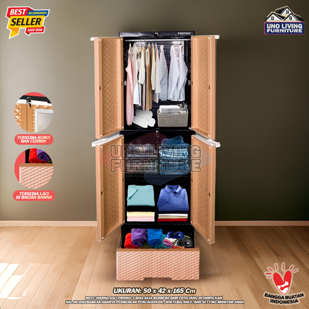 [Mall] LEMARI PAKAIAN PLASTIK GANTUNG DAN LACI LEMARI PINTU RAK SERBAGUNA LS2PL TABITHA DENGAN CERMIN