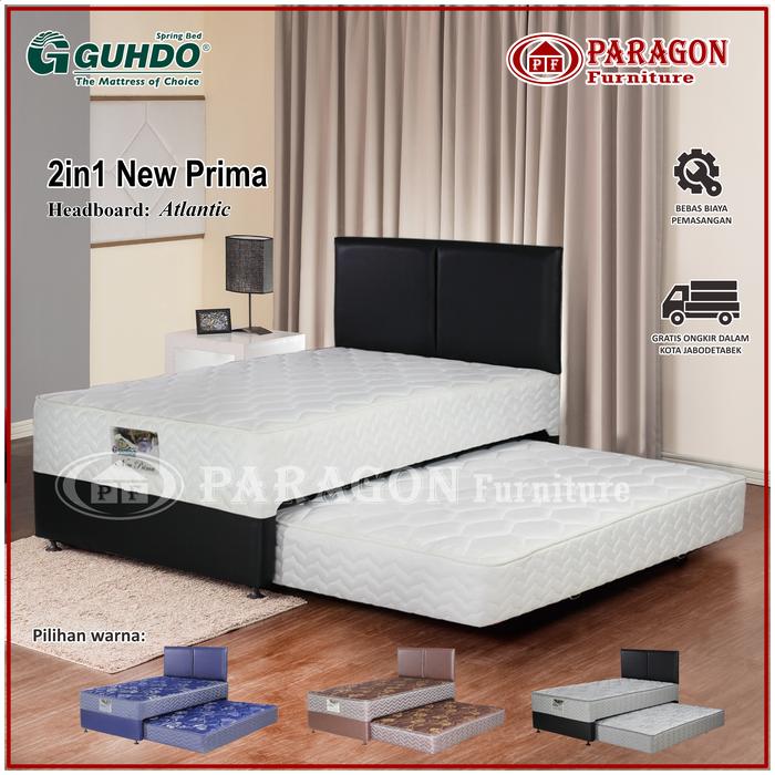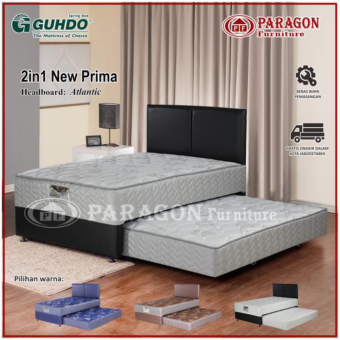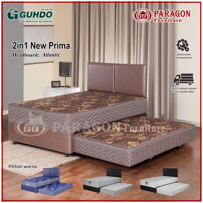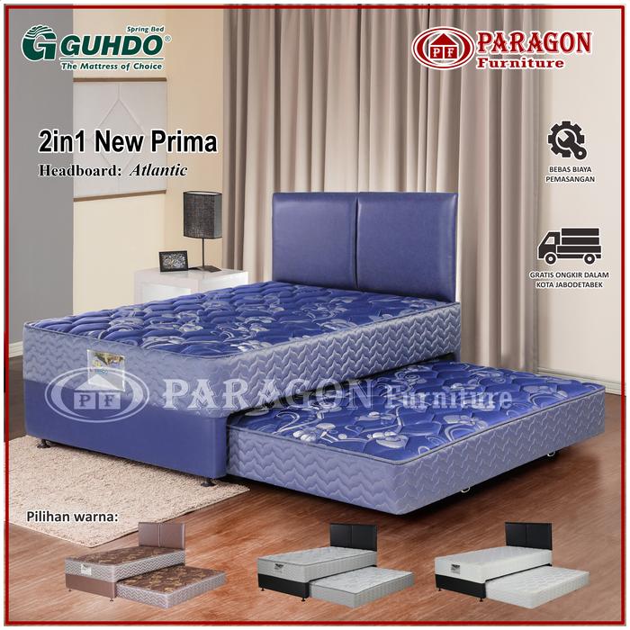 GUHDO SPRING BED 2IN1 NEW PRIMA 90 100 120 140 160 180X200 HB ATLANTIC FULL SET - KASUR SPRINGBED - FULL SET ABU2. PUTIH, BIRU, COKELAT., 90X200/178